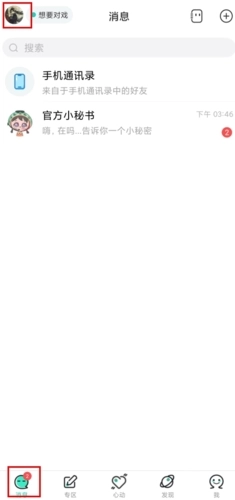 1、点击消息页面左上角头像;