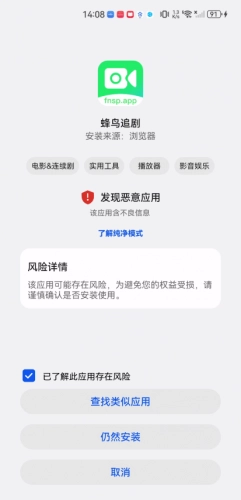 2、系统发现恶意应用,可能是误判,需要点击“了解风险”。