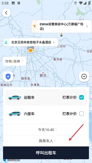 4、挑选车型(例如出租车),点击“呼叫出租车”按钮来发起行程预约。