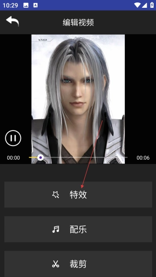 3、进入视频编辑界面后,找到并点击【特效】选项,即可进入特效添加的功能界面。
