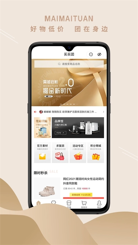 买买团是一个专注于社群团购领域的平台,平台上有数千名专业买手,他们会精心挑选各类优质商品,为用户带来数万种品牌商品的团购机会。借助买买团,用户可以用优惠的价格买到高品质的商品,平台涵盖了生活家居、母婴用品、食品饮料、服装鞋帽、日用百货以及进口商品等多个品类,能够全方位满足用户的日常购物需求,让用户享受到便捷高效的一站式采购体验。