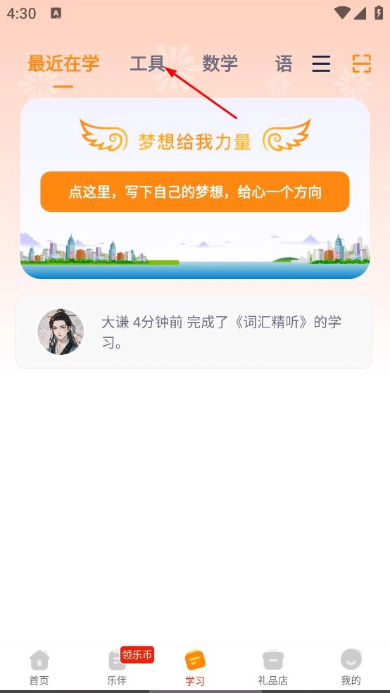 在学习页面,点击工具,进入工具分类页面。