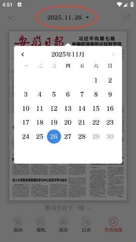 3、若想查看前几日的报纸,可点击上方的时间进行查找。