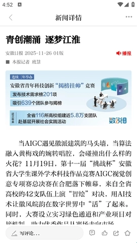 安徽日报电子版是安徽日报社推出的客户端,作为一款以政经新闻和政务服务为核心的新闻资讯类软件,十分适合日常喜爱看报读新闻的朋友使用。该平台能为用户提供最新最热的一手新闻资讯,所有内容均通过正规渠道获取,并经过精细整理,内容质量颇高,有需要的朋友可以安装体验!