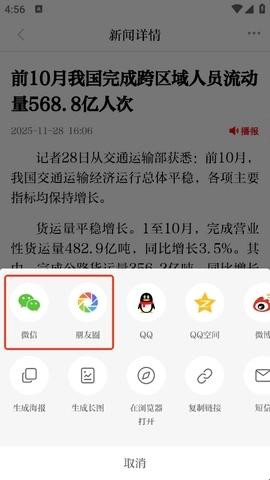 3、另外一种方法是下滑至文章底部,能看到“分享至”选项,选择“微信”分享给好友,或者直接分享到朋友圈发布。