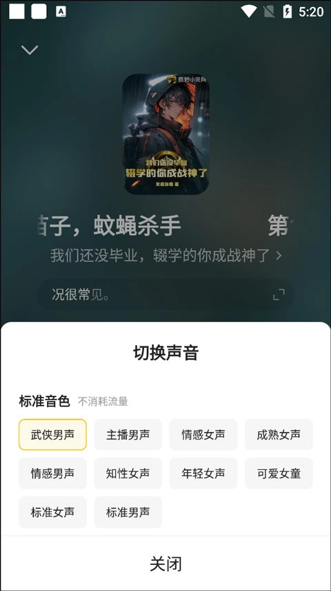 1、进入听书界面,点击下方的声音进行切换