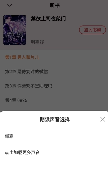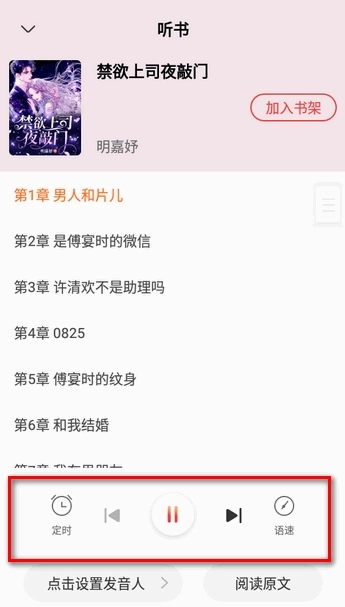 5、点击最中间的按钮就可以开始听书了,还可选择朗读声音。