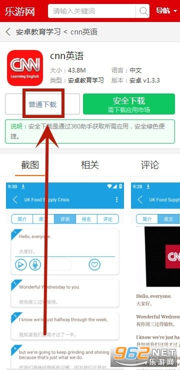 1. 在本页面的CNN英语处,点击“普通”选项即可。