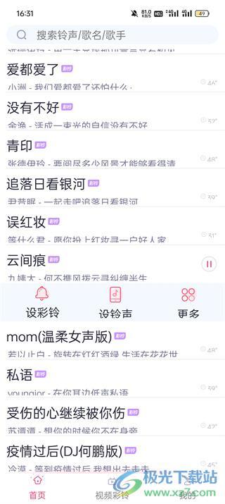 1. 打开并进入软件,随意挑选一个铃声,然后点击设置为彩铃。
