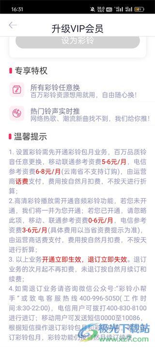 2、能够发现,温馨提示中提到彩铃是要收费的。