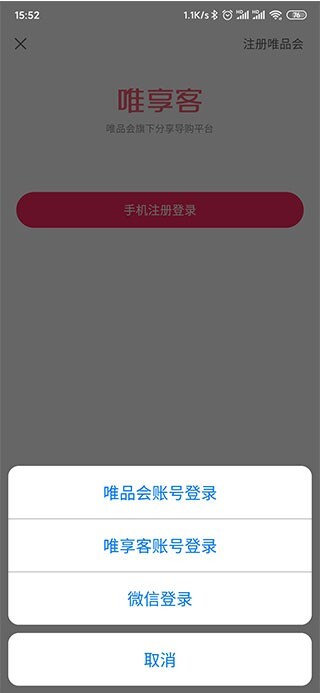 1、在本站安装并运行唯享客,随后使用微信、唯享客或唯品会进行登录。