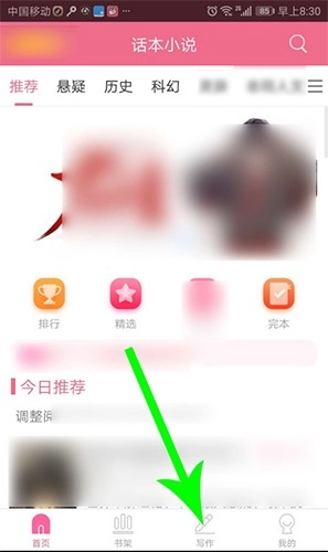 1.想要写小说时,打开话本小说首页点击“写作”。