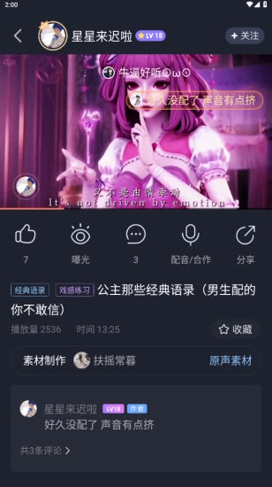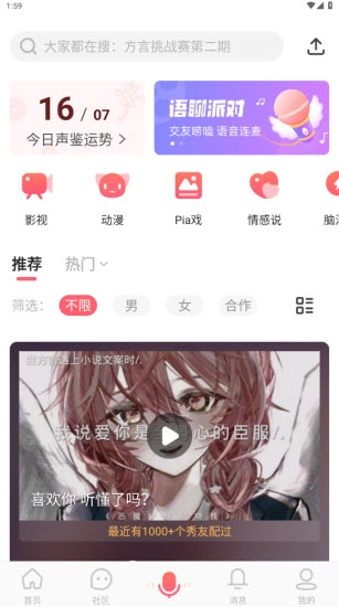 配好的大作别忘了分享出来秀一秀哦,各类声控达人将给你鼓励和评价,原创配音社区等你加入。