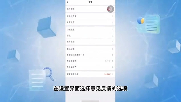 3、在设置界面选择“意见反馈”