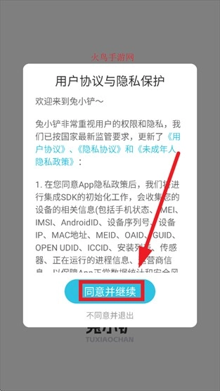 在用户协议与隐私保护提示界面点击同意并继续