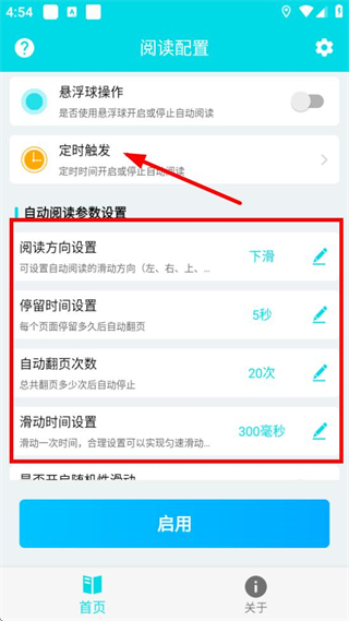 1. 于阅读配置里设定好自动阅读参数,随后点击定时触发。