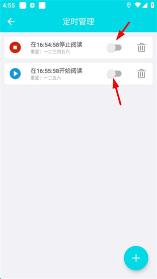 2、进入定时管理,即可开启或关闭定时停止阅读与定时开始阅读的功能。