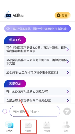 打开AI写作宝,进入首页后点击“AI创作”分类;