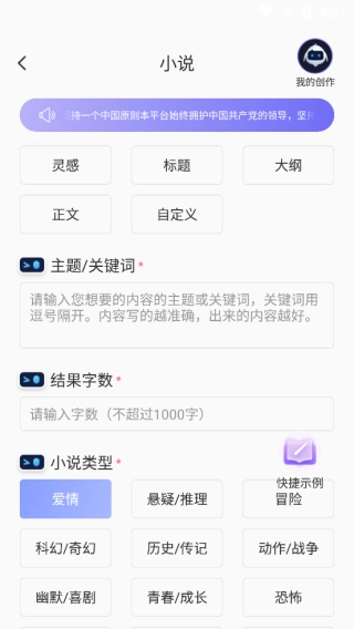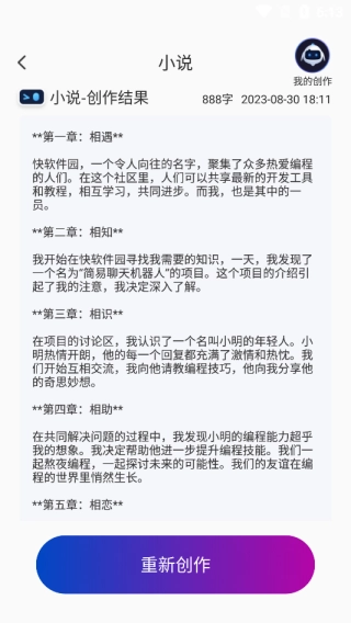 点击“立即创作”按钮后,AI会自动生成与设定要求相符的小说文本。