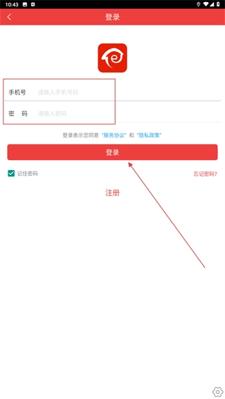 3、若您已有账号,可在登录页面填写手机号与密码,随后点击【登录】按钮;若您尚未注册账号,则点击【注册】按钮进入注册页面。