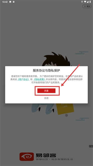 1、启动应用后,当出现【服务协议与隐私保护】的弹窗时,点击【同意】按钮,以此确认接受相关条款内容。