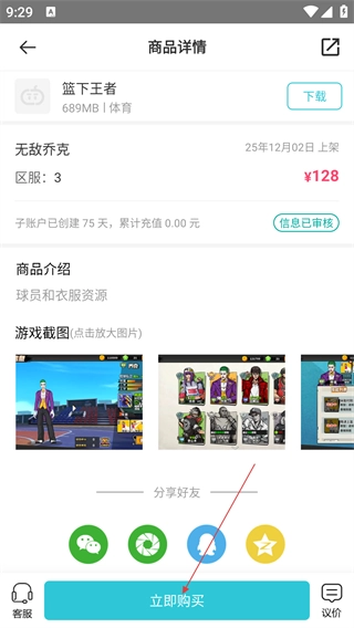 3、在商品详情页里,核对好商品信息后点击【立即购买】按钮,系统会跳转至支付页面。