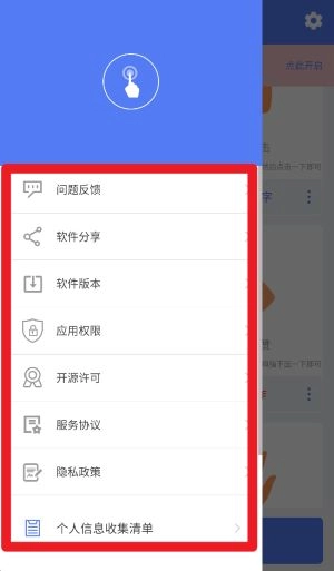 2、点击左上角的菜单图标即可打开功能菜单,其中包含问题反馈、版本查看、权限设置等多项操作选项。