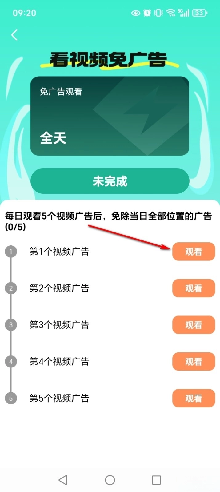 按照要求观看5个广告即可全体观看电视了