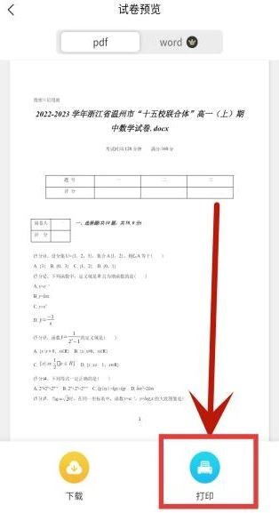 2、点击需要打印的试卷,选择PDF格式或WORD格式后点击打印按钮即可完成打印操作。