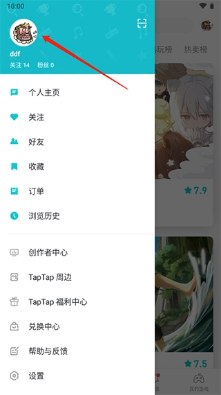 打开taptap ,点击右上角的头像。