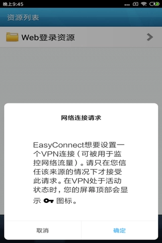 4、验证操作结束后,系统会自动跳转回EasyConnect资源列表页面,同时状态栏会显示当前的连接状态。