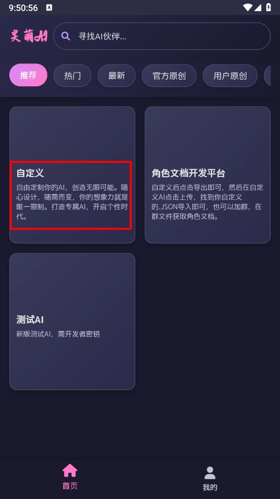 7.返回主页,即可与自定义角色开启对话