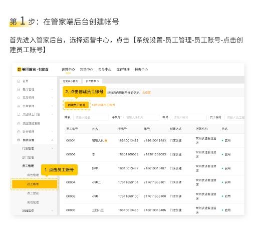 第 1步:在管家端后台创建帐号