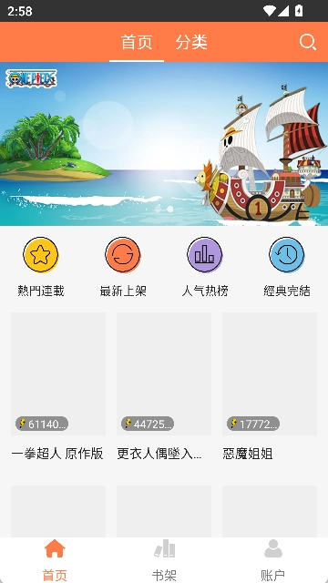 爱漫画是一款汇聚海量漫画作品的阅读软件,平台上收录了《一拳超人》《更衣人偶坠入爱河》《火影忍者》等众多热门漫画,还对所有作品做了细致分类。无论你偏爱格斗、魔法题材,还是钟情侦探、校园故事,都能在这里轻松找到心仪的内容,是一款相当不错的追漫工具。
