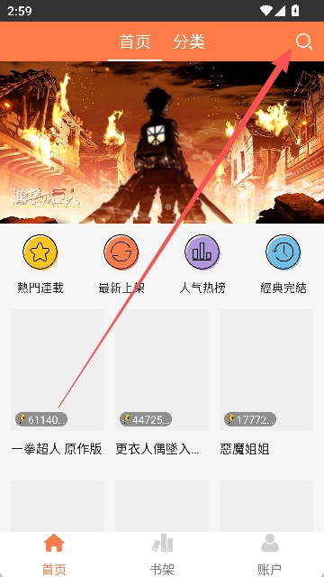 4.在此处输入漫画名称或作者姓名,就能查找自己感兴趣的漫画作品