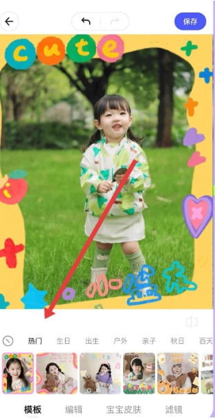 1、在蛋啵软件的照片编辑界面里,设有热门生日等分类模板,点击相应模板,就能快速给宝宝照片添上可爱边框与装饰元素,打造出专属的萌趣风格。
