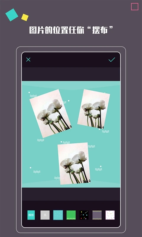 自由布局模式:支持直接拖拽图片,在画布内进行任意移动、旋转与缩放操作,还能让图片部分溢出画布,以此营造出动态效果。