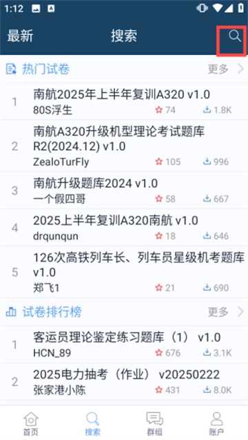 2、进入搜索界面后,点击右上角的搜索图标,输入关键词就能查找【热门试卷】等相关内容,便于大家获取学习资料。