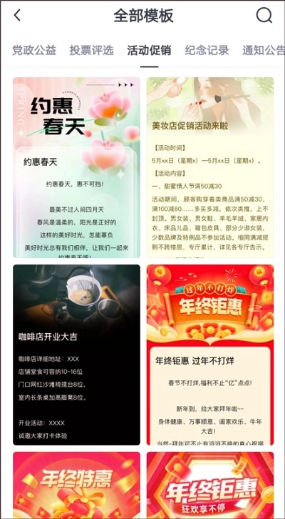 2、在【活动模板】页面内,查找适合自己使用的模板