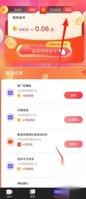 -通过刷视频、完成签到、邀请好友等多种任务赚取金币,小额提现操作便捷