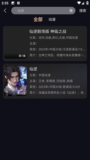 3、在搜索结果里找到你想找的动漫,点击进入它的详情页面。