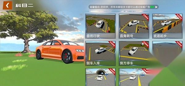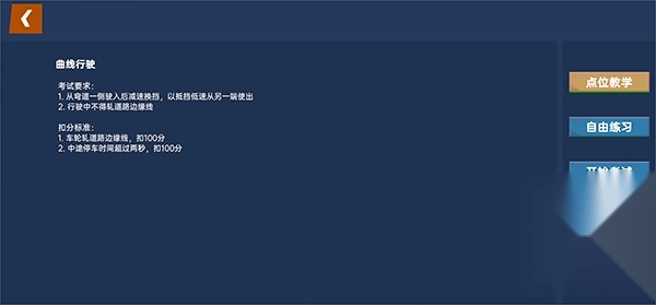 2、以科目二为例,在这里您可以练习曲线行驶、直角转弯、坡道起步等所有项目,您可以针对自己的弱势进行练习;