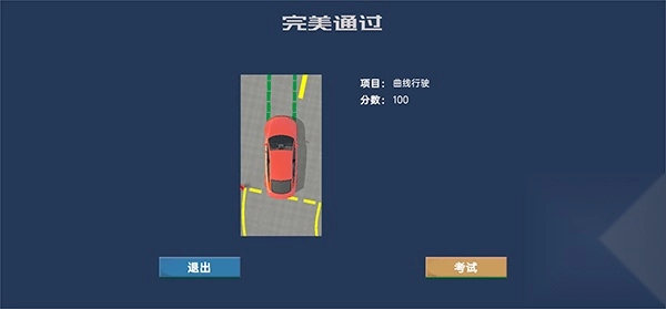 5、完美通过后,就会计算出您的总分数和扣分项目,此时你就可以退出选择其他项目进行练习。