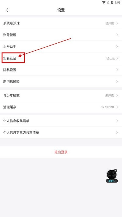 3、然后再点击实名认证;