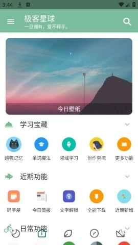这款名为极客星球Pro的应用是一个功能强大且用途广泛的工具箱,它把丰富的资源和实用的工具整合在一起,为用户提供了无限的可能性。无论是查找资料、观看影视,还是聆听音乐、浏览网站,这款软件都能迅速满足用户的各种需求。此外,它还包含了大量实用的工具,例如超强记忆、单词魔法以及领域学习等功能,这些工具能够帮助用户更高效地学习,快速掌握新的知识。