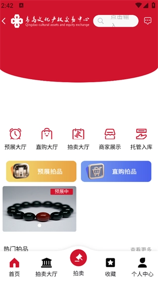 在首页就能看到预展大厅、直购大厅、拍卖大厅这些功能板块。