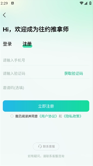输入手机号和验证码,即可注册账号,开始使用。