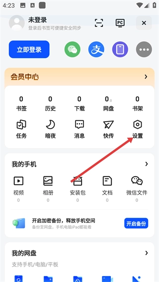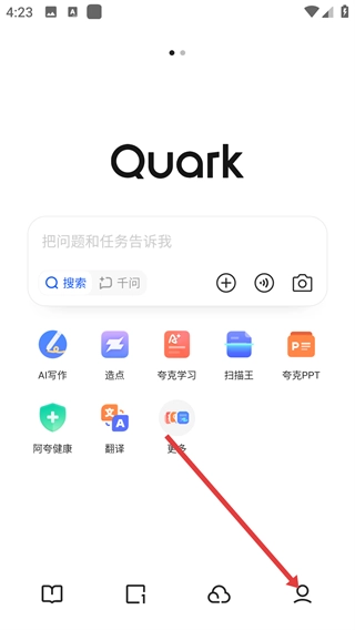 在夸克的主界面上,点击右下角标有【我的】字样的图标,即可进入个人页面。
