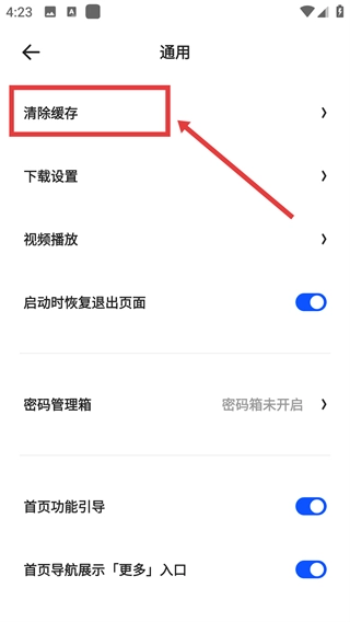 在通用设置页面找到【清除缓存】按钮并点击,以此完成缓存清理的操作。