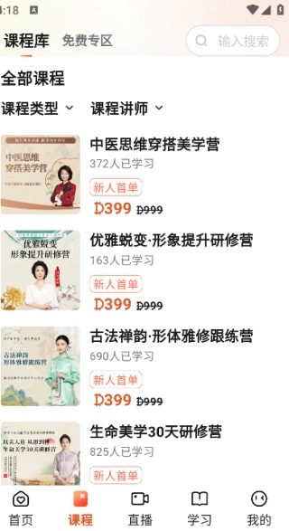 点击页面下方的‘课程’,即可看到全部课程。